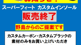 インソールの提案 スーパーフィートインソール「カスタムインソール販売終了のお知らせ」 野島からの「緊急❗ご案内」です。現在、ご愛用いただいております「スーパーフィートカスタムインソール」(カーボンとブラック)の販売が近々終了となります。※輸入元のメーカーとの契約終了のため現在のところスーパーフィートカスタムに変わるインソール... 2025.10.08 お知らせインソールの提案