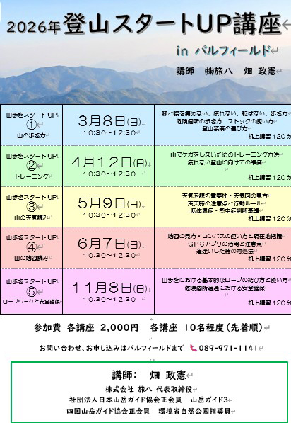 「2026年登山スタートアップ講座」のスケジュールが完成しました。