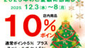 2025年のご愛顧に感謝して! 店内商品10%ポイントキャンペーン! お知らせ 2025.12.04 2025年のご愛顧に感謝して! 店内商品10%ポイントキャンペーン! 2025/12/3(水)から12/8(月)の期間 通常ポイント5%プラススペシャルポイント5%